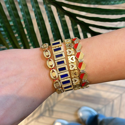 De collectie stenen armbanden van JUJU is ontworpen voor mensen die wat meer sprankeling aan hun look willen toevoegen. Maak je persoonlijke stijl compleet met een JUJU stenen armband en creëer contrast met de effen armbanden die je draagt, accentueer je stijl op avondfeestjes of maak je favoriete edelsteen onderdeel van je look. In wezen zijn JUJU stenen armbanden eenvoudige JUJU-armbanden, opnieuw geïnterpreteerd met de toevoeging van edelstenen, en ze zijn ook volledig aanpasbaar met de kleur van metaal, touw en steen naar keuze.